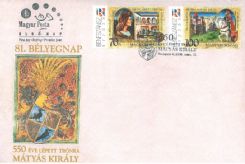 "The annual gathering of stamp collectors and its associated philately exhibition is being held in the headquarters of the National Federation of Hungarian Philatelists between 16-18 May 2008. Unusually the celebratory stamps will be issued before Stamp Day at the opening of the exhibition “Star in the Shadow of the Raven – John the Valiant and the beginning of humanism in Hungary” at the National Széchényi Library.Matthias Hunyadi, king of Hungary (1443-90), is known as Matthias Corvin, King Matthias the just, or, officially Matthias I, but in everyday speech he is simply called King Matthias. His reign in Hungary was between 1458 and 1490. Tradi-tionally he is considered one of Hungary’s greatest kings, whose memory is preserved in many folk stories and legends. During his reign the court at Buda and Visegrád became one of the centres of the Renaissance in Europe. The new stamps recall the style of the miniatures of the Corvins and feature the logo of the Year of the Renaissance. In the numbered block King Matthias and Queen Beatrix seated on their thrones receive a papal envoy with Buda Castle in the background. On the HUF 70 stamp of the set there is a portrait of King Matthias and a detail of the palace in Visegrád. The HUF 100 stamp features the conquering King Matthias and, as a composition of related elements, a cas-tle, a ballista and a knight of the black army in the background."