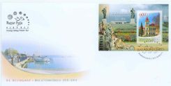 "The proceeds from the surcharge of the Stamp Day block (HUF 200 per block sold) will be transferred by Magyar Posta to the National Federation of Hungarian Philatelists to support or-ganised stamp collecting in Hungary. Balatonfüred is a small town with 13,500 inhabitants on the northern shore of Lake Balaton among rolling hills. It is embraced by hills to the north and the lake to the south. Its name, contrary to popular belief, is not derived from the Hungarian verb to bathe (fürödni) but refers to a place with quails (fürj). It was first mentioned in the description of the estates of Tihany Abbey in 1211. Its tourism dates back cen-turies and, after its mineral water was classified as medicinal water and its source as a medicinal spring, it became a spa town in 1971. Since 1987 it has borne the title International Town of Grapes and Wine. Its reputation mainly rests on its Mediterranean-like climate and its carbonated springs. Balatonfüred and its surroundings lie on the “Balaton Riviera”, which is so called due to the special features of the micro climate in the locality. The exchange of air between the land and the lake and the constant movement of air gives the locals clean, dust-free air. The State Coronary Hospital operates here, making use of the spring water for medicinal purposes. This is where the famous Nobel Prize winner, the Hindu poet, Rabindranath Tagore, recovered his health in 1926, after whom a promenade was later named. The town is also rich in places of historic interest, most of which have been renovated and converted. Balatonfüred started developing in the Age of Reform, in the 1800s. It was a favourite meeting place for politicians and artists with a progressive spirit, and this is when its historic and cultural role was the greatest. The town has numerous monuments, and important buildings and traditions from this age. It was here in 1825 that the first Anna Ball was held in Horváth House, and in 1831 that the poet Sándor Kisfaludy opened the first permanent theatre in Transdanubia from donations, and help from the Abbey and the locals. (Source: balatonfured.hu) The building of Vaszary Villa in Balatonfüred is shown in the stamp design of the numbered block with a surcharge while the border features the lakeside of the Balaton, and statues in public spaces in the town. These include The Fisherman and the Ferryman, Rabindranath Tagore, Sándor Kisfaludy, Saint Stephen, The Lizard, Count István Széchenyi, Mór Jókai and Lujza Blaha. The first day cover for the block is adorned with the marina in Balatonfüred. The HUF 90 stamp of the set features the Anna Grand Hotel in Balatonfüred and the HUF 115 stamp the Balatonfüred Coronary Hospital. The Round Church and Gallery, and the Roman Catholic (Red) Church are shown on the first day cover for the set. The commemorative postmark has a logo related to the town’s 800th anniversary."
