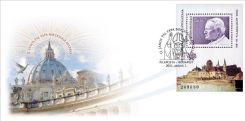 "On Sunday, 1 May 2011, Pope Benedict XVI beati-fied his predecessor, the late Pope John Paul II, before a crowd of many hundreds of thousands of people at a mass in St Peter’s Square in the Vatican. At ten thirty-eight the Pope beatified Pope John Paul II, who was the leader of the Catholic Church from 1978 until his death in 2005, in the traditional Latin rite. The feast day of Blessed John Paul II is the same day as his papal investiture in 1978, 22 October. Beatification is the first part in the process of can-onisation. John Paul II (1920-2005) was beatified at record speed in modern times, only six years and one month after his death. The commemorative cover shows a detail of Saint Peter’s Basilica in the Vatican, the location of the beatification. On the cover the special postmark of a portrait of Pope John Paul II adorns either the stamp block issued in honour of his visit in 1991 or the stamp block issued in his memory in 2005."