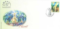 "The new stamp offered as a festive decoration to adorn cards and letters in 2009 is based on a work by the painter Zoltán Réti entitled Shepherd’s Cross. In the middle of the composition in the distance there is a shepherd in a black hat surrounded by white lambs, the harbingers of spring and renascence. In the foreground life-giving ears of wheat can be seen beneath the blue sky. The painting is also a portrayal of Christ crucified. The first day cover for the stamp features the painting “Outdoor Mass” by the same artist. The design of the special postmark employs a detail of the painting on the cover, the stylised Christ crucified in front of the church. Zoltán Réti (1923) was born in Nagyoroszi, then lived in Érsekvadkert and, from the age of 10, in Balassagyarmat. He graduated as a teacher and cantor from the Teacher Training College in Miskolc in 1942. He was taken prisoner during military service and an adventurous journey took him from the North Sea to Bavaria, where he made a living as a portrait painter and church organist. After he returned to Hungary in 1946, he taught in Patvarc, where he was the cantor and choir master. In 1953 he obtained a degree as a music teacher in Budapest. He founded a music school in Balassagyarmat, where he was the director and a teacher for twenty years. For several decades he taught at the Bajcsy Primary School, the Balassi Bálint Secondary School, the Teacher Training College and the Szántó Kovács János Secondary School. He did not abandon his studies in the fine arts, which were interrupted by World War II, and completed his studies at the Hungarian College of Fine Arts in 1969. Although he works in oils and graphics, his preferred medium is watercolours, and his favoured subjects are landscapes and famous sons of Nógrád county (the writers and poets Madách, Mikszáth, Balassi, Komjáthy) as well as portraying the Bible. He has won numerous awards and distinctions: the Apáczai Csere János Award, the Madách Award, the Gold Cross of Merit of the Republic of Hungary and the Szabolcsi Bence Award. He is an honorary citizen of Nógrád county, Nagyoroszi, Balassagyarmat and Érsekvadkert. (Source: www.agt.bme.hu/balassi/retiportre.html)"