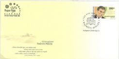 "Miklós Radnóti (Budapest, 5 May 1909 – Abda, 9 November 1944), the Hungarian poet, was an outstanding exponent of modern Hungarian verse. His affinity with literature showed early. Before he was even twenty, he started a literary periodical called 1928 with his friends. Two issues were published with two of Radnóti’s poems. In 1929 the young group published an independent anthology Jóság (Goodness), which included twelve of his poems. In 1929-30 he participated in the foundation and editorial work of a periodical with an avant-garde approach, Kortárs (Contemporary). In the autumn he enrolled to read Hungarian and French at the Faculty of Humanities at the Ferenc József University in Szeged. In 1931 he joined the activity of the Szeged Youth Art College. On 11 April 1932, on the instruction of the Budapest court of justice, his home was searched and the remaining copies of his volumes of poems were confiscated. He was charged with vilifying religion and affronting decency, and was sentenced at a closed hearing to eight days of imprisonment, but in the end its execution was suspended. In the autumn of 1932 he passed his bachelors degree and took his doctorate in May 1934, receiving the distinction summa cum laude in June. He wrote his French thesis and became a 3rd generation writer with the prominent literary periodical Nyugat. In 1935 he got married and travelled with his wife to Paris on a number of occasions. He began translating Guillaume Apollinaire’s poems and in 1940 the translations jointly prepared with the poet István Vas were published. In October 1941 he prepared the poet Attila József’s early poems for publication. In 1942 his own volume of poetry Naptár (Calendar) was published. The poet’s translations of black tales called Karunga, a holtak ura (Karunga, the Master of the Dead) were issued in 1944. On 18 May he was called up for forced labour, and was sent to the Ukrainian front. In May 1944 the Hungarian army retreated and Radnóti’s unit was directed to the labour camp near Bor in Yugoslavia. He arrived in the Heidenau camp on 2 June. He jotted down his poems describing the sombre conditions at the camp and others addressed to his beloved wife, Fanni, in a little notebook and distributed its sheets among his friends with the intention that his works would be left with the survivors and be published after the war. At the end of August he was on a forced march near Győr. The poet was by then unable to walk, and was shot and placed in a mass grave on the edge of the village of Abda. 18 months later he was exhumed, and his notebook with his last poems was found in his jacket pocket. (Source: http://hu.wikipedia.org) The stamp design is a portrait of Miklós Radnóti. In the background there are details of two of his poems (Razglednicák and Nem tudhatom). The first day cover for the stamp shows a graphic composition referring to the last days of his life and a detail of a letter written to his wife (Levél a hitveshez). The graphics of the special postmark have been inspired by his poems written on the pages of his notebook."
