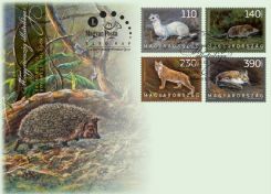 On this occasion the protected predatory and insectivorous mammals the stoat, pygmy shrew, European lynx and greater mouse-eared bat feature on the stamps in the series, and the northern white-breasted hedgehog is shown on a numbered stamp block. The miniature artworks were designed by István Weisenburger using the works of the prize-winning graphic artist and painter Erzsébet Valaczkai, and were printed by the banknote printing company Pénzjegynyomda. The new stamps are to be released on 9 April at Filaposta and large post offices in Hungary, but will also be available for purchase on Magyar Posta’s web site. Stoat (Mustela erminea) • This long, slim animal favours damp habitats and avoids closed forests. It mainly eats small rodents and birds. It is an opportunistic, skilful predator. Its winter coat is entirely white except for the black tail, and in the summer its coat is sandy brown on the back, white on its belly and chest, and black at the tip of its tail. Pygmy shrew (Sorex minutus) • It inhabits dry shrubby areas with abundant vegetation, avoiding closed forests. It preys on small insects and invertebrates. In winter it spends about 50 per cent of its active time above ground, which means it can easily fall victim to owls. It reproduces several times a year, giving birth to 4 to 7 cubs on each occasion. European lynx (Lynx lynx) • The lynx prefers extensive dense forests. Besides its spotted coat and distinctive beard, a distinguishing feature is the tuft of fur at the tip of its ears. It has excellent hearing and touch. Its long limbs and muscular body enable the animal to leap 3 to 4 metres to pounce on its prey even in deep snow. Greater mouse-eared bat (Myotis myotis) • Hungary’s most common bat is active at night and is gregarious. It favours open, sparsely wooded areas but also lives in residential areas. It spends the winter in caves. This insectivorous mammal catches its prey using high frequency sounds and echolocation. Its lifespan is over 20 years. Northern white-breasted hedgehog (Erinaceus roumanicus) • This nocturnal animal lives among dense undergrowth in sparse woodland, among bushes and in gardens and parkland. Its sharp teeth are effective not only for capturing earthworms but they can also easily bit a snake in two. It has a thick coat of spines and an undercoat of fur. The black and white banded spines harden shortly after birth. Its breast is covered in white fur. It has well-developed skin muscles, allowing it to curl up in a defensive ball. It hibernates and females have two litters a year. It can live up to ten years. Source: hu.wikipedia.org