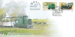 "Narrow-gauge railways are railways with a smaller track gauge than the standard 1,435 mm. Today there are still twenty-two railways with a track gauge of 760 mm and two railways with a track gauge of 600 mm, operating according to a timetable in the most beautiful parts of the country on lines with a total length of 390 kilometres. The Zsuzsi Forest Railway in Debrecen (HUF 75 stamp, Mk48 series diesel engine) is the country’s oldest narrow-gauge railway, currently using the remaining 17 km section running from Debrecen to Hármashegyalja of the now disused 48 km Debrecen Timber Yard-Nyírbéltek railway. The first section between the Timber Yard and Nyírmártonfalva (22 km) was opened in 1822, and then the track was extended in several stages to Nyírbéltek. The track section between Hármashegyalja–Nyírbéltek (31 km) was closed in 1977. The stamp design shows a lake near the end station. The Hortobágy National Park’s Hortobágy Fish Pond Railway (HUF 100 stamp, C 50 series diesel engine) evokes the memory of the old fish-farm railways used for transport from the fish ponds on the Hortobágy plain. This could not be replaced by a paved road for environmental reasons. In 2004 the track (4 km) was rebuilt, and stations and stops were added in 2006. Since 1 May 2007 it has served touristic purposes as well. The stamp design shows Hungary’s longest stone bridge used for public transport, the nine-arched bridge (167 m). The Nagybörzsöny Forest Railway (HUF 125 stamp, type MD 40 diesel engine) celebrated its centenary in 2008. The line between Nagybörzsöny–Nagyirtás (8 km) is the upper section of the former Szob–Nagybörzsöny (22 km) narrow-gauge railway. The use of switchbacks at Tolmács Hill and Kisirtás is a technological rarity (the engine pulls then pushes the train). The stamp shows the switchback in Kisirtás. The renovation of the lower section between Szob–Márianosztra (7 km) was completed in 2007, and plans for the rebuilding of the middle section between Márianosztra–Nagyirtás (7 km) have also been drawn up. The Királyrét Forest Railway (HUF 275 stamp, number 490,2004 Morgó steam engine) is the light railway with the heaviest traffic in the Börzsöny Hills, which was built in 1893. Nostalgia trains have also been running on the Kismaros–Királyrét (10 km) section since September 2003. These are pulled by the steam engine shown in the stamp, which arrived in Kismaros from Romania on 29 April 2003. The stamp also features the viaduct of the Budapest–Szob railway line at Kismaros spanning above the track of the forest railway. The first day cover depicts a train from the Hortobágy Fish Pond Railway with buffalo wallowing in the background. The design of the special postmark shows the type MD 40 diesel engine of the Nagybörzsöny Forest Railway from the side with the switchback. (Source: article by Csaba Károly Tusnádi"