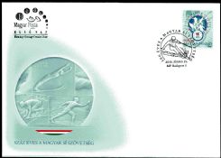 This is the first self-adhesive commemorative stamp to be issued in the history of Hungarian stamp issuance. The design shows the different skiing disciplines and the logo of the Hungarian Ski Association. 200,000 copies have been printed by the printing company Codex Értékpapírnyomda based on designs by Imre Benedek. The new stamp will be available at large post offices and Filaposta in Hungary from 15 July, but may also be purchased from Magyar Posta’s online store. The first Hungarian skier seems to have been the well-known ornithologist István Chernel, who came across skiing in Norway in 1891 and learnt how to ski on his trip to Lapland. On his return to Hungary he demonstrated the basics. The first organised course was held in 1907. The first Hungarian championship was held in Tátraszéplak (today Tatranka Polianska, Slovakia) in 1911. A year later the Hungarian Ski Club was founded to coordinate competitions and skiing life in Hungary. On 15 July 1913 fourteen ski clubs formed the Hungarian Ski Association, which became a member of the International Ski Commission in 1914. Competitions were suspended during the years of the First World War. The turbulent times and the post-war loss of territory were severe setbacks for the sport in Hungary. However, reorganisation began shortly, and pistes and ski-jumping facilities were developed. Hungarian competitive skiers gradually returned to international sporting life. At the 1924 Congress in Chamonix 14 countries including Hungary established the International Ski Federation. After the 1936 Winter Olympics, Hungarian skiing developed greatly. The territories with many new competitors that Hungary regained in the run up to and early years of the Second World War benefited the sport. The post-war redrawing of the country’s borders was an impediment to the spectacular improvement of Hungarian skiing as the loss of mountains with guaranteed snow on the ski slopes was a new blow to the sport. During the war the Association’s library and archives were destroyed, and countless skiers and organisers lost their lives. Thanks to enthusiastic work and marvellous personalities, the Association recovered. The revitalised Ski Association soon became involved in international sporting life and achieved good results in various international competitions. After 1948, all Hungarian sport came under state control. The country’s political isolation meant that foreign relations were almost entirely severed, and Hungary’s top sportsmen and women at best could compete with the other socialist countries. At the time of the 1956 Revolution almost 50 high-class skiers left the country. The sport in Hungary was unable to keep pace with international improvements and technical developments. The number of clubs, competitors and coaches diminished. The leaders of the sport first decided to compete with smaller teams and then not to take part in world competitions at all. In the early 1970s efforts focused on strengthening the biathlon. After 1989, the path to neighbouring countries opened for skiing as both a mass and competitive sport. (Source: Artúr Bánás: For the Centenary of the Hungarian Skiing Association, published in Bélyegvilág, issues 6, 7 and 8, 2013)
