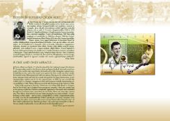 "Flórián Albert was the only Hungarian footballer to win the Ballon dor and his honours in-clude playing for Hungary in several World and European championships, being the Sportsman of the Nation, an honorary citizen of Hercegszántó, Budapest and Ferencváros, and being decorated with the Middle Cross of the Order of Merit of the Republic of Hungary. Magyar Posta is issuing a commemorative sheet to mark the 71st anniversary of his birth, devoting HUF 100 from the sale of each sheet to support the aims of the Flórián Albert Foundation. The main aim of the Foundation is to preserve the memory and reputation of Flórián Albert and to promote the eternal values of Ferencvárosi Torna Club (FTC). The Foundation also seeks to provide national support for training young players, including appropriate personnel and facilities, and to find talented youngsters around the country which includes the possibility of finding success at FTC. It also supports youngsters talented at sport growing up in difficult circumstances and their families, organises training camps, and provides financial and professional help for sporting purposes. The Foundation collaborates with other social organisations, local authorities and educational institutions in Budapest and the provinces in finding and educating talented youngsters. The composition of Magyar Posta’s philatelic speciality features a montage of images of Flórián Albert together with the world famous footballer’s signature. The well-known footballer is also shown on the commemorative card for the commemorative sheet. The commemorative sheet in a Hawid mount is on the inside of the card, where there is also a tribute to the player in English and Hungarian. The commemorative sheet is available for purchase by collectors of philatelic speciali-ties and sport lovers in this exclusive holder. "