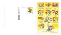 "On 20 November 1989 the United Nations General Assembly adopted the Convention on the Rights of the Child in New York, which the Hungarian legislature enacted in Act LXIV of 1991. On the picture side of the postcard related to the topic, and in the stamp design and the special postmark there are graphic compositions and inscriptions in a style addressed to young people referring to the contents of the UN Convention on the Rights of the Child. The drawings are by Attila Zách. The graphic designs on the web site on the rights of the child operated by the parliamentary commissioner for civil rights help to inform children and raise awareness of their basic rights. Magyar Posta will donate HUF 10 from the price of every picture postcard sold to the Active Citizenship Foundation, which aims to promote a broad consciousness of the civil rights of children."