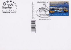 "In 1884 Debrecen was the first place in the Austro-Hungarian Monarchy where steam-driven rail transport was introduced, and this provided the basis for building the tram network later. Construction works started in 1910 and transport began on 16 March 1911 on three existing lines, already used for steam or horse-drawn passenger vehicles, and a newly built tram line. The tram network developed, though with small hiccups, in spite of the outbreak of the First World War, the world economic crisis, inflation and a shortage of coal. After the Second World War, however, tram transport faced major problems. Bombing had caused serious damage in the city and there was a constant shortage of drivers and staff due to men being called up for military service. In the post-war period the town’s tram transport had to be rebuilt from scratch. After nationalisation, the company started buying second-hand vehicles from Budapest. Later the rolling stock was expanded by a Hungarian made articulated tram. This was followed by another twenty-eight, nine of which were manufactured in the company’s own workshop. The Debrecen Transport Company made a total of sixty-three trams in nine years for other provincial towns also suffering from a shortage of vehicles. In the first half of the 1970s all the branch lines of the tram network were closed and transport was restricted to one line, tram number 1. The early 1990s brought a major breakthrough when the company signed a contract for making a prototype articulated tram with six axles meeting the technical requirements of the age. With the rapid spread of motorisation at the end of the 1990s, reforming public transport became more and more pressing. This was when the idea crystallised for a new tram line on a route where transport capacity could not be increased by other means. After long consultations and planning, Debrecen was the first city in Hungary to receive the approval of the European Commission for a proposed project, which was for the realisation of the city’s tram line number 2. (Source: dkv.hu) The picture side of the postcard marking the centenary of tram transport in Debrecen shows one of the city’s nostalgia trams with the famous Calvinist Great Church in the background. On the back of the card local trams illustrate the value imprint and the special postmark also employs the silhouette of a tram. "