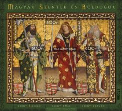 Magyar Posta is presenting the theme of Hungarian saints and blesseds through a series of stamps to be issued over several years. The stamps of the first miniature sheet feature the panel of the main altar of the Cathedral of Saint Martin in Spišskà Kapitula, Slovakia, which used to be part of historic Hungary. The panel depicts the country’s holy kings, St. Ladislaus, St. Emeric and St. Stephen. The unusual feature of the issue is that, apart from the standard version of the miniature sheet, special and monochrome editions are also being released. The miniature sheet was designed by György Kara and produced by Pénzjegynyomda. The new issue will be available at main post offices and at the Filaposta from 14 August but it can be ordered online from Magyar Posta’s internet shop as well. Canonisation and beatification is the ceremonial proclamation that a deceased person has been received among the saints or blesseds by God. It was Pope Alexander III who first made the distinction between universally recognised saints and locally venerated blesseds. This was when the terms ‘sanctus’ meaning saint and ‘beatus’ meaning blessed came into use. The precise procedure for beatification and canonisation was established by Pope Urban VIII, which, with minor modifications, is in use today. To date Hungary has given the Catholic communities of the world more than 50 saints and blesseds. The first piece in the philatelic series presents the holy kings of Hungary. The dynamism of the saints’ attributes leaning towards each other counters the static nature of the three carefully composed figures of equal height. On the heraldic right stands the middle-aged Saint Ladislas wearing a fleur-de-lys crown. In the middle is the serene-looking, youthful Prince Emeric. Next to him on the left is the elderly Saint King Stephen, who commands respect. His armour evokes the period of Sigismund of Luxemburg. He holds a golden sceptre with a long rod in his right hand and a huge orb in his left hand.